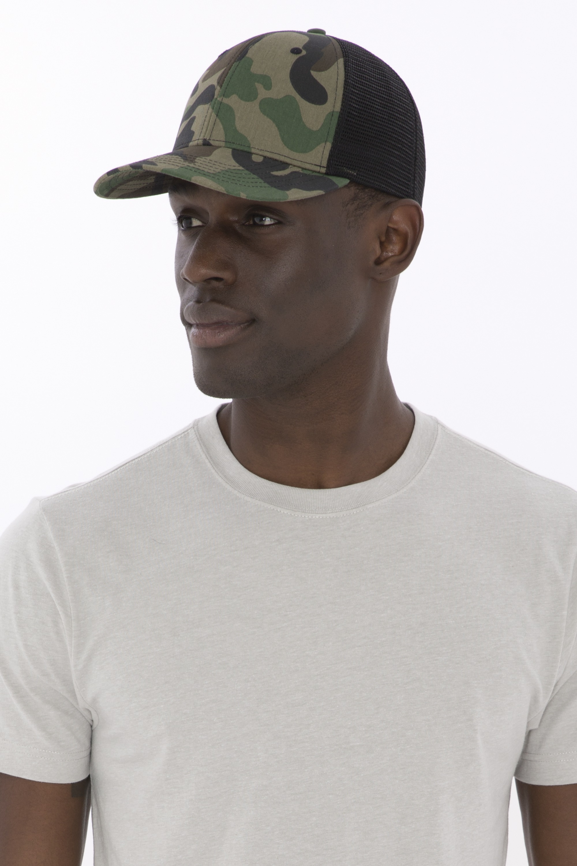 Front panels: 100% cotton twill. Mid and back panels: 100% polyester mesh. 6-panel. Adjustable snapback closure Mid profile Structured.