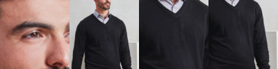 100% acrylic. Fine knit. Easy care. Set in sleeves. Soft feel and contemporary styling. Ribbed knit neck, cuffs and hem.