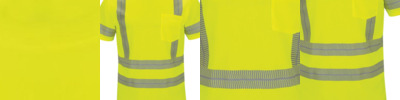 4 oz., polyester birdseye mesh; Moisture wicking; 2" reflective stretch tape; ANSI/ISEA 107-2015 Type R Class 2 Certified; Left-chest pocket; Taped neck seam for comfort; Relaxed fit;