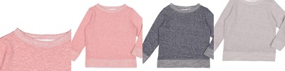 80% organic cotton/20% recycled polyester.* Soft cotton faced fabric. Brushed back fleece. Drop shoulder style. Relaxed fit. Ribbed collar, cuffs and hem. Taped neck. Twin needle stitching. Unbranded size label at neckline.