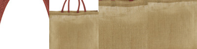 Unlaminated starched jute. Cotton carry handles (55cm long).Cut out label.Capacity 21 litres.
