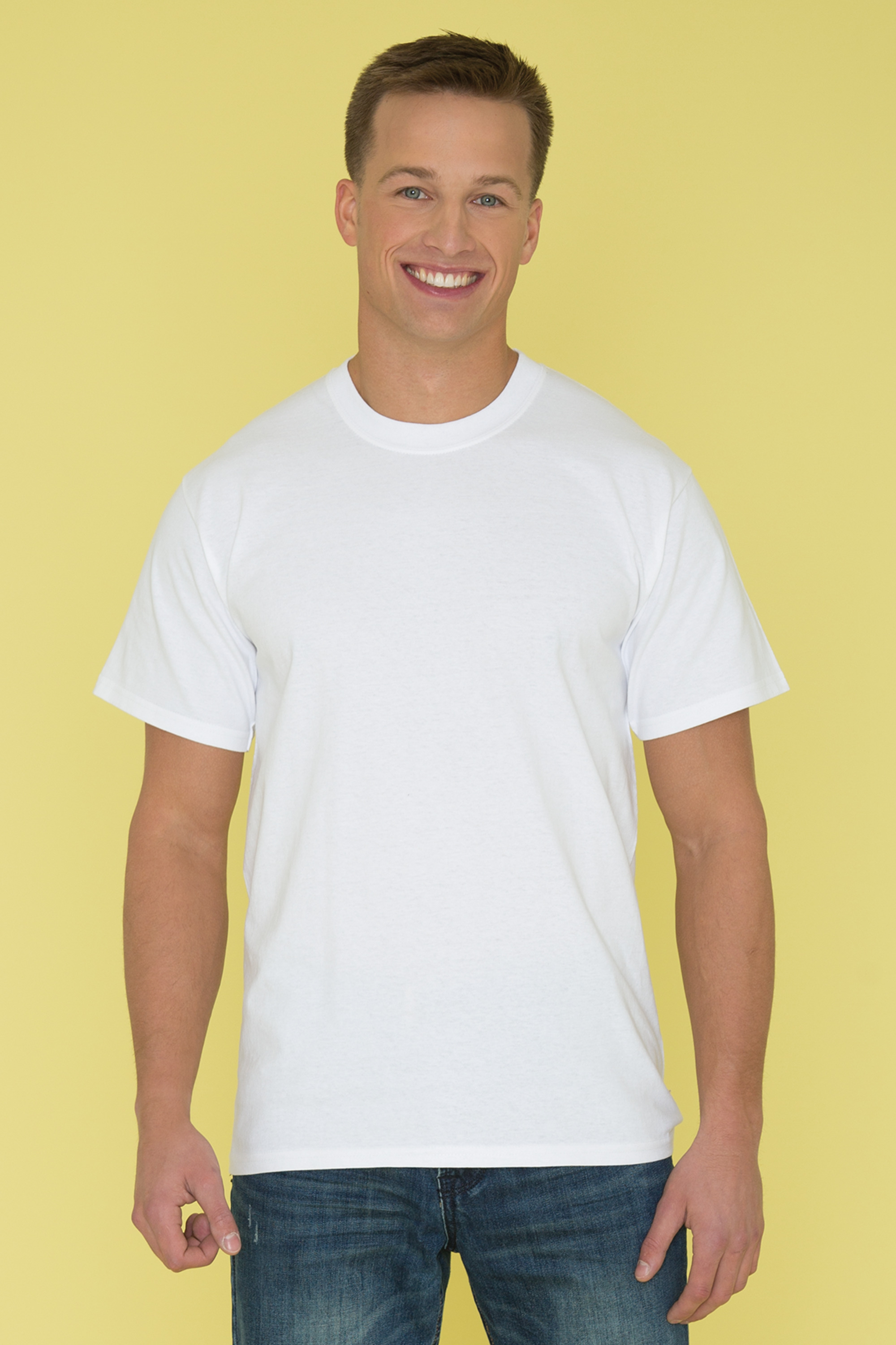 9.1-oz, 100% cotton Compacted yarns to minimize shrinkage Taped neck and shoulders for comfort and durability Tear away label for private branding Side seamed Classic fit *90/10 cotton/polyester **60/40 cotton/polyester (Heather Navy, Heather Red, Heather Royal, Dark Grey Heather) (Athletic Heather).