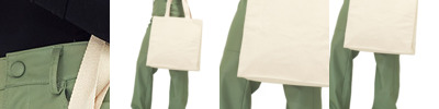 100% cotton canvas. Heavyweight canvas. Chevron webbing carry/shoulder straps (66cm long). Internal zip pocket. Internal elastic pocket sewn into the gusset at the base of the bag. Tear out label. Capacity 18 litres. Hand wash only.