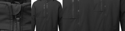 Two layer soft shell. Recycled polyester outer layer.Recycled polyester micro fleece inner layer.Fully lined and padded.Showerproof, windproof and breathable.Detachable adjustable hood.Full length zip with chin guard and inner zip guard.Right chest zip pocket.Two front zip pockets.Elasticated cuffs.Drawcord hem.