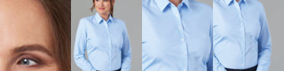 72% cotton/25% organic cotton/3% elastane. Mercerised cotton. Soft feel stretch fabric. Button down collar. Back yoke. Back darts. Single button cuffs with button on cuff gauntlet. Curved hem. Available in short sleeve PR386.
