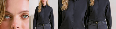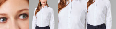 100% cotton. Tailored fit. Classic collar. Clear buttons. Princess seams. Single button cuffs. Curved hem.