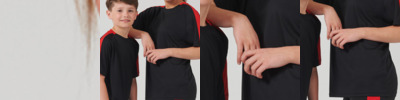 100% polyester. Single jersey. Wicking finish keeps you dry and comfortable. Raglan sleeves. Contrast back collar, shoulder and sleeve panels. Twin needle cuffs and hem. Tear out label.